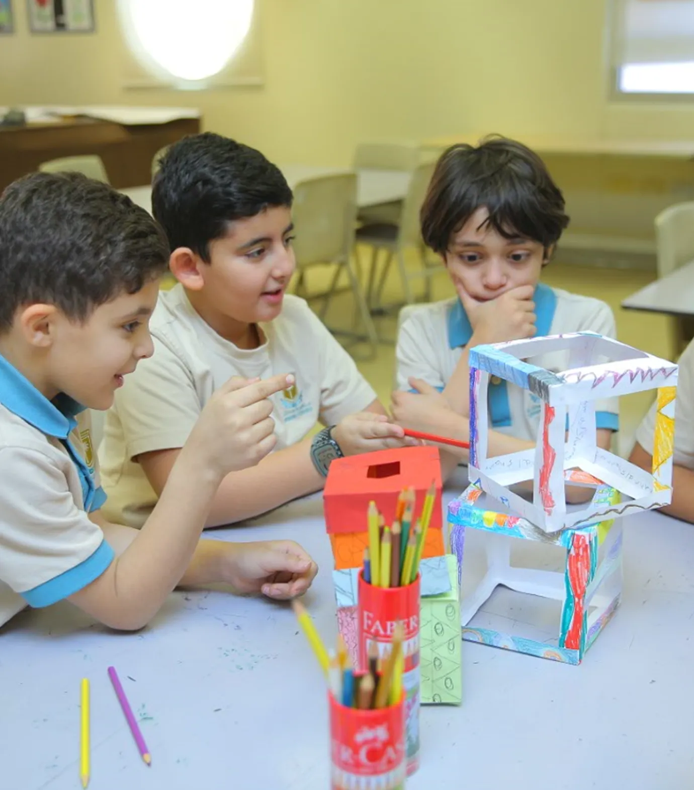 في المرحلة الابتدائية يتحول الفضول إلى ثقة بالنفس. حيث يعزز الطلاب مهارات القراءة و الكتابة والمهارات الحسابية و التفكير العلمي، من خلال مشاريع تربط بين القيم الوطنية والرؤى العالمية. وبتفعيل الاستقصاؤ و والتعلم الرقمي وحل المشكلات الإبداعي ، يتعلمون كيف يطرحون الأسئلة ، ويفكرون بعمق، ويتعاونون مع الآخرين.